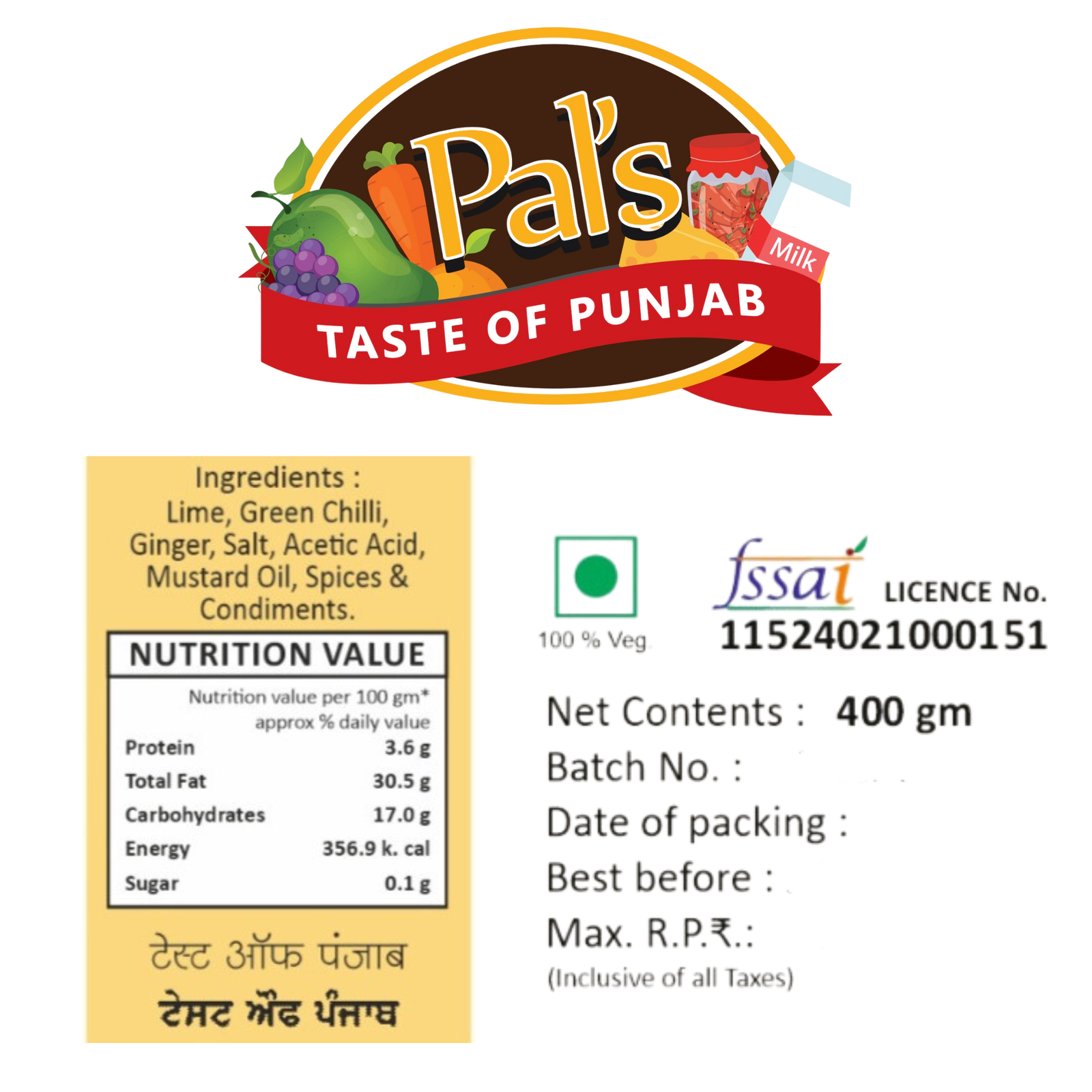 Bring home the bold flavors of Punjab with our handcrafted Lime Chilly Ginger Pickle. A fiery mix of tangy limes, Slightly spicy green chillies, and aromatic ginger, this pickle is perfectly seasoned with traditional spices to give you an authentic taste in every bite.